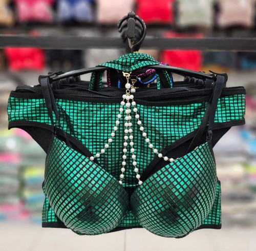 ست شورت وسوتین زنانه اسفنجی مدل دیسکویی مرواریدی